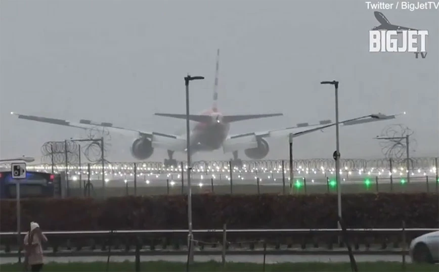 Οι πιλότοι μιας πτήσης της American Airlines κατάφεραν να προσγειωθούν με ασφάλεια στο αεροδρόμιο Χίθροου του Λονδίνου παρά τους ισχυρούς ανέμους, που έφερε η καταιγίδα Γκέριτ.