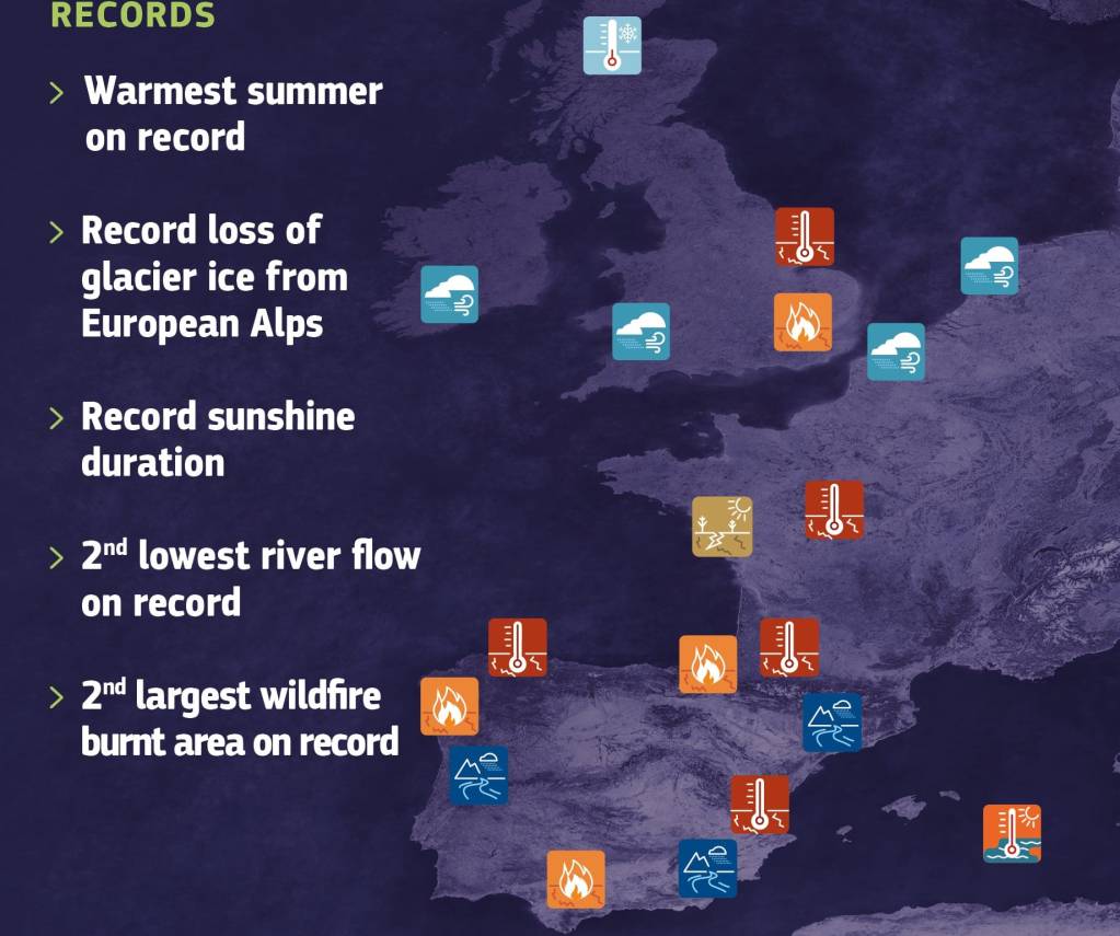• Η Ευρώπη γνώρισε το δεύτερο θερμότερο έτος που έχει καταγραφεί ποτέ