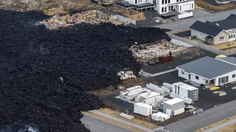 Νωρίτερα αυτόν τον μήνα, τρία σπίτια στη νοτιοδυτική Ισλανδία καταστράφηκαν όταν λιωμένη λάβα εκτοξεύτηκε μέσα από δύο ρωγμές που δημιουργήθηκαν από το ηφαιστειακό σύστημα Svartsengi.