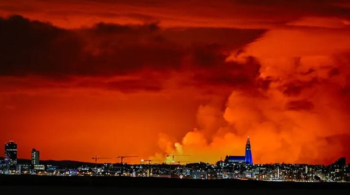 A state of emergency has been declared in Iceland after a volcano erupted for the fourth time since December, spewing orange lava into the air.#Iceland #Svartsengi #Reykjanes #Volcano pic.twitter.com/BmbezwDjIk