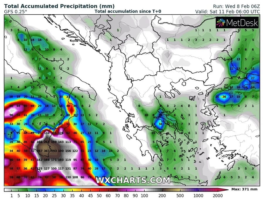 Τα φαινόμενα θα πλήξουν κυρίως τις ανατολικές και νότιες περιοχές και σύμφωνα με τα τελευταία μετεωρολογικά στοιχεία αναμένονται ύψη βροχής που πολύ πιθανόν να περάσουν τα 200-250mm.